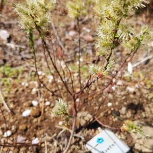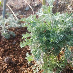 カワラヨモギ ヨモギに少し似ていますが、太陽光に当たると青白い程に反射する葉がとても美しいです。 漢方では茵蔯蒿として用いられるそうです。 名前にカワラと付きますが、こちらは川から2㎞ほど離れた山の山頂の礫地から種子を採種して出来た苗です。 根元が木質化するため低木に分類される事もあるようです。