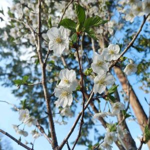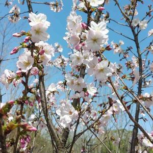 桜 アーコレイド 二期咲き品種。 10月頃はポツポツと、今の時期は大輪の花を沢山咲かせます。 山桜を親に使っているので葉と同時に花が咲きます。 とても綺麗な桜です。
