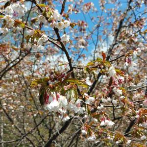 タカネザクラ(ミネザクラ) 奥日光で撮影しました。 この当たりでは5分咲き位。 山頂付近では蕾の株もありました。6月初めが見頃かもしれません。 雪が残ってるんですから当然ですね。