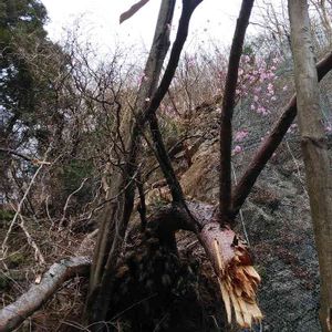 アカヤシオツツジ 今日は群馬までドライブに行ってきました。 崩落によりアカマツの根元に付いていたアカヤシオの大株が倒されてました。 勿体ないですねー。