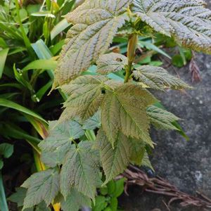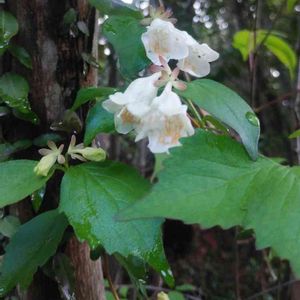 イワガラミ。かな? 現場付にて。 よく見ずに写真だけ撮影したので分かりませんが鋸歯が荒っぽいのでイワガラミとしました。