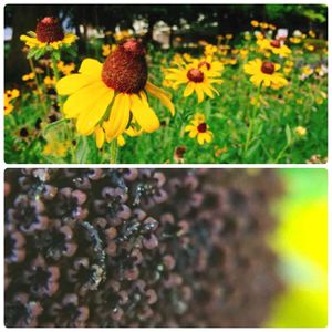公園のこの花☝️ チビ助が通るたびに、中心の茶色くて硬い突起物をつまみます。 たぶん、ち〇びと勘違いしてる🙄💭💭 でもそこをマクロ撮影すると、ちーーーさい花の塊が! あら可愛い😘