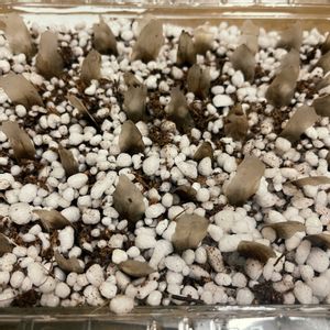 ニョキニョキ プルメリア ジップロックで保管していた再利用の土で 開けた瞬間カビ臭かった&うっかり微粉たっぷりかけちゃった 過酷な環境だったのに芽が出てくれました🤲´-
