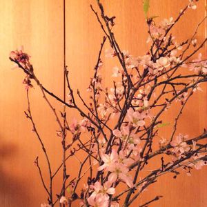 少し前に、お友達のお店の玄関に生けた自由花です♪生けた時は桜は蕾でしたが、4日くらいしてこのような満開になりました。