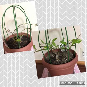 12月まで色づいていたブーゲンビリア 昨年はテラスで冬越ししたけれど、今年は室内に入れて、初めて あんどん仕立てにしてみました 支柱に巻きつける作業の途中からポロポロと葉が落ちはじめ、数日で緑の葉も赤い苞も全て落ちてしまい…枝だけになっちゃいました😅😅 この姿で春を迎えるのかな?と思っていたら、なんと今日、芽が出ていました❣️ えー⁉️こんなに早く⁉️部屋に入れて10日くらいなのに😆でもすごく嬉しい💕 ちなみに今の環境は… 東向きの窓辺。障子越しの日差しが半日くらい。 蓄熱式暖房のため24時間常に20度くらい。 やや乾燥するので3、4日ごとに水やり。 どんな風に成長してくれるかドキドキ💕楽しみ✨😊