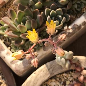 ウィンドオブチェンジのお花✨ 花火のように、アチコチから花芽をのばして…(^^*)💛 小さな体でお子様いっぱいだし、花芽もつけて…大丈夫かな💦 でも、いつ見ても涼しげな子です💞