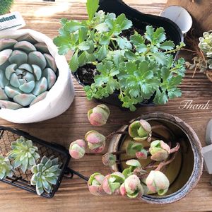おはようございます♡ 昨日は久しぶりに 寄せ植えを したのですが、その前に…♡︎ʾʾ 数日前に GSで知り合った saekoさんと多肉狩りに行った記録を☺️ 今日のpicは プレゼント🎁で 頂いた子達✨ 日比谷ガーデニングショー 交換プレゼントです😆 行った日が違うと 微妙にいる子が 違ったり…なので この交換🎁は とっても 嬉しかったー(人´∀︎`)💓 そして2人で 多肉狩り♫ その記録は また後日に☺️ saekoさん 本当にありがとう〜💕