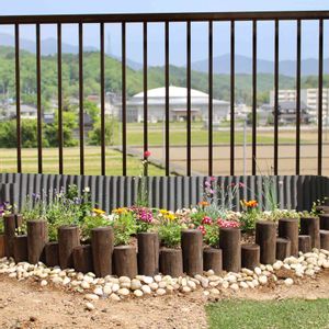 手作り花壇。母親の好みにせっせと。 正面から見たらこんな感じになりました💪
