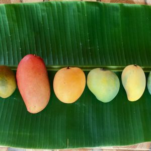 今日はマンゴー🥭です💕💕 マンゴー🥭大好き٩(ˊᗜˋ*)و💕 今10歳の息子が、マンゴーの種類を覚えたがってたので並べて写真撮りました。これら以外にも、サラダに使う青マンゴーや、市場で手に入れられない種類がたくさんあります。 右から3つはお庭から採れたもの。 左3つは、安売りしてたので買ってきたものです。 普段高くて買えないのですが、今年はマンゴーが豊作のようです🎶 消費者には有難いです🙏🏽
