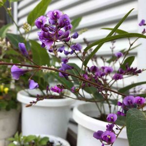 ハーデンベルギア 何回か枯らせてしまい、今回お安く購入できたので、蕾の時お迎え🤗 白っぽい薄紫が欲しかったんだけど、ちょっと濃い目の紫だっだぁ〜😅💦 今度こそ枯らせないように育てなきゃ😃