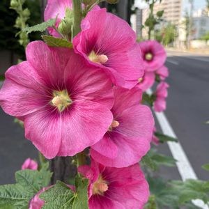 今日のお花 タチアオイ 通勤路、毎朝色とりどりのお花に元気をもらいます🌺 2025.6撮影