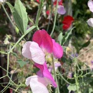 スイートピー💕 通りかかった小学校の花壇で咲いてました とてもいい香りがして、思わず立ち止まりました かおりえんどう「香豌豆」とも言われるそうです フルーティーないい香りがしました