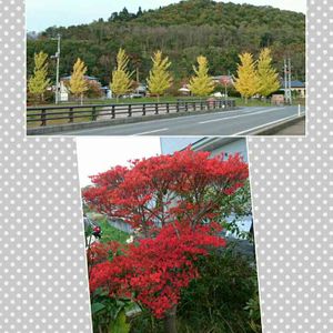 紅葉の景色二つ 上のは、近くの川原の公園で、 もう1枚のドウダンツツジは、わが家の小さな庭で🍂