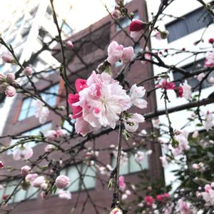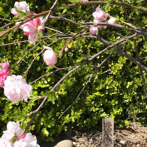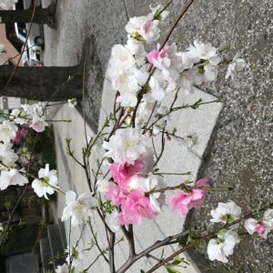 源平しだれ桃 5年前、次女が1歳になったときに記念樹として植えました。 毎年花びらの色がだいたいマーブル模様なのですが、今年は初めて単色の花が咲きました🌼