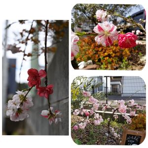 満開が楽しみ😊 源氏の白旗、平氏の赤旗にちなむ紅白咲き分けの花桃。 桃と白のキメラ模様も! 一本の木から彩どりの花が咲くなんて!自然て不思議だなぁ🌸