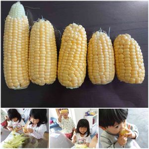 育てているとうもろこしを、試し採りしてみました。 スイートコーンで、白い実が混じる品種。育てやすくて甘味が強いとの事(種販売元の受け売りです) 今年は実がちょっと小粒でしたが、甘さは合格点でした。