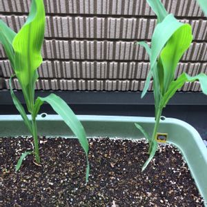 とうもろこし🌽ゴールドラッシュ90😊 早い時期に種をまいたせいか18粒中🌽発芽は2本のみ😅