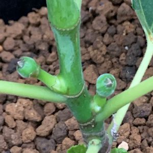 みなさん❗️こんにちは‼️😃 ミニイチジクの苗を買って1カ月ですが葉の脇から出て来てるのは実かな⁉️😅