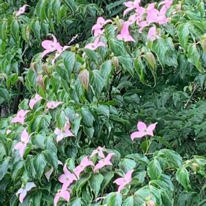 ピンクのヤマボウシが咲き始めましたが今年は花数がかなり少ないです。🌸😥 白花のヤマボウシも横並びに斜面に植えてますが同じく花が少なかったです。😥