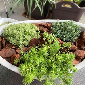 昨年の10/7… 私が初めて多肉を買った日です。 (正確にはその数年前に買って枯らしていますが😄) その時買ったのは、ミルクゥージと覆輪丸葉万年草。 多肉はもう育てないつもりだったのに、ミルクゥージの葉の色合いが可愛くて我慢できず、連れ帰ってしまいました😅 このあたりの経緯は、みどりのまとめの 『私と、植物と、多肉』 に書いてあります。 上の写真がそのときの苗。 今の様子が下の写真です。 もちろんこの鉢以外にも、この子たちはあちこちにいますよ😆 やっぱり、何度見ても可愛いですよねえ〜 そこからまさか、わずか8ヶ月で多肉を仕事にしてしまうとは… 当時の私は思いもしなかったことです。 仕事にすると、趣味とは違う苦労もありますが、趣味ではやらなかったようなことまでやることにもなりました。 今までもたくさんの方にいろんな事を教わったり、いいねをいただいたり、多肉をいただいたり🤣しながらやってきました。ありがとうございます🙇 多肉界ではちょっとマイナーな万年草たちの魅力をみなさんに伝えられたらいいな、と思いながら多肉を売っています。 今後ともよろしくお願いいたします。