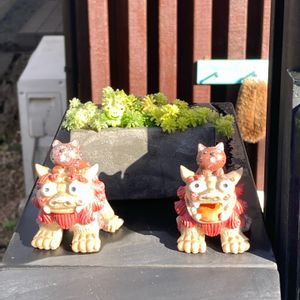 おはようございます。 11/23(水)終日雨予報のため、休業とさせていただきます。 写真は、新しくポストの上に置いた、イリオモテヤマネコを背負ったシーサーです。 今まで室内に置いてあったのですが、外でみなさんを出迎えてもらうことにしました😊 背後にあるのはマンネングサ3兄弟が植えてあるミニブロックです。 私、実はイリオモテヤマネコマニアなんですが…、まあそれはさておき。 今日は午前中、初めてのワークショップを行います。 人にきちんと教えるのははじめてなので私もドキドキですが、がんばります。 おかげさまで、最近、リピーターのお客様も増えてきたので、昨日より公式LINEでショップカードをはじめました。 それにともない、LINEのちまちま屋のトーク画面の下に、ショップカードへのリンクを表示するようにしました。表示が邪魔な方は「メニュー」と書いてあるところをクリックすると下に隠せます。 ショップカードは、一回来店ごとに1ポイントたまります。(カード取得時には、1ポイントボーナスで差し上げています) 店頭にポイント取得用のQRコードを表示していますので、来店された際は忘れずに読み込んでください。 ポイントが5回分たまると、当店の150円以下の商品1点、またはお好きなカット苗1種類を差し上げます。 差し上げる商品は150円以下のものであれば、多肉植物、ミニチュア小物、土やピンセットなどの園芸用品など、なんでも構いません。 ご来店のみでもポイントはつけられますが、プレゼントを差し上げるのは、期間中に商品を買い上げいただいたお客様に限らせていただきますのでご了承ください。 また、プレゼントを差し上げるのは、店主在宅の時に限らせていただきますので、事前に確認のうえご来店下さるようお願いします。 ※公式LINE登録は、LINEのホームの公式LINE検索窓に『多肉植物 ちまちま屋』と入れて検索して下さい🙇