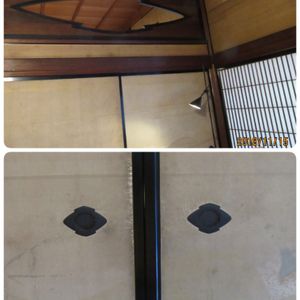 旧岩崎邸庭園の華 「菱」のデザイン 欄間等の建具ばかりでなく襖の引き手やなげしの釘隠しにも菱形のこだわりが見られる。