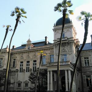 旧岩崎邸庭園 東京 上野にある三菱財閥の創始者 岩崎弥太郎の屋敷です。 正面にはロータリーとヤシの木。 そんな個人邸って。。 そんな岩崎邸は洋館と和館が併設され、裏庭は広い芝生と樹木のある庭園となっています。 洋館はジョサイア・コンドルの建築。 和館は江戸時代からのもの。 板の間から柱まで、節目のない木材が使われています。 和館では抹茶と和菓子が食べられる喫茶もあります。 このような建物を自宅にする明治期の大富豪は凄いですね。