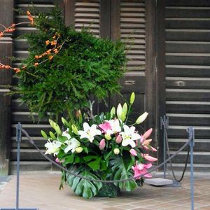 きのう出かけた旧岩崎邸にて🌿 假屋崎省吾さんの作品🎉 建物内に展示されている作品は、すべて撮影禁止でしたが、屋外にあったこの作品には撮影禁止の札がありませんでしたのでパシャリ🎉