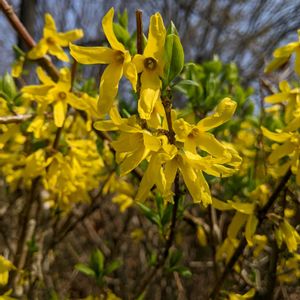 今日のお花~レンギョウ~です💛 鮮やかな彩りで咲いています💗 アイノコレンギョウは、 レンギョウとシナレンギョウの交配種です。 春の初め頃に黄色い花を枝に、 びっしりと咲かせる落葉低木です。 切り花にも用いられます💠 [ 3.24 pic ]