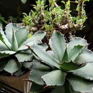 アガベ ハイブリッド ボビコルヌータxピグマエア 寒波でダメージ受けて復活中😅