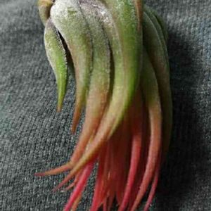 私の不注意で落としてしまったエアプランツですが、赤い家の子(…の根元の方)から何か見えます。子株かなぁ…。大きくなれば良いなぁ…。