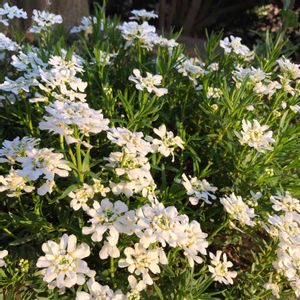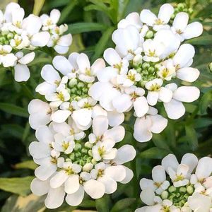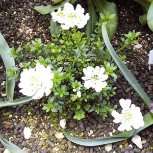 今日のお花…イベリス✨ 我が家のイベリスは、まだ咲いてません😅 これから開花です😆 左下の開花してる子。 ブライダルブーケ💐✨ この子は去年に購入した開花株です💖 長く咲いてくれてます🎶