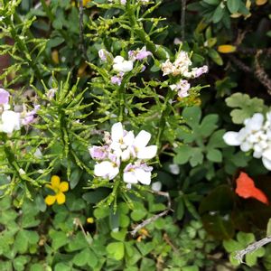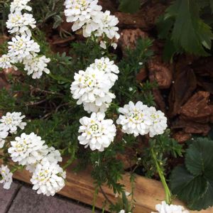 本日のお花、イベリス。 これはブライダルブーケ。 前にギャザリングに使ったものを花壇に植えたけど 移植を嫌うイベリス。昨シーズンは 咲いてくれませんでした。 今シーズンやっと咲いてくれて嬉しい💓 でも、寄せ植えやらに使ってるイベリスが4つ分。(´-∀-`) はてさて、どうするか・・・。 極小庭なので、宿根の養生に困ります。 イベリスの隣はローズマリー。 皆様のpicで可愛らしいお花をみますが 我が家の2年生はまだ咲かない!!😭 ウエストリンギアの方は年中咲いてるんだけどなー。
