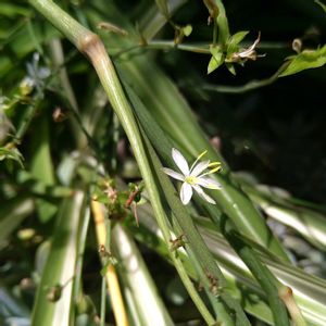 今日のお花、オリヅルラン✨🤍✨ シャープな斑入りの葉が素敵です💚🤍💚 職場から引き取った時は小さな苗でしたが、ひと回り大きくなってお花も咲くようになりました🤗🎶