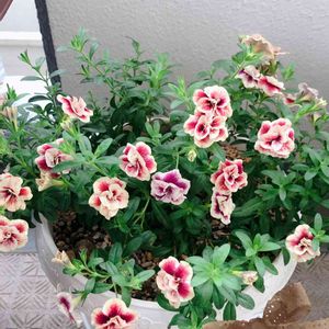 おはようございます^ ^ ミリオンベルプチホイップ ストロベリー💖 遠めにみて、花の色の滲みがぽわ〜と した感じを楽しむのが、いい🥰