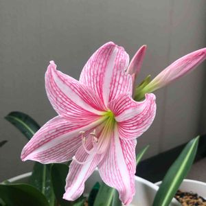 今年も咲き出してくれました🌸👏 なんだか、花の形がいびつ😅 お引越しで、どうしてもお連れしたかった アマリリス・レティキュラータム改め、 ヒッペアストラム・レティキュラータム🌸 投稿始めてから、何度か登場してますが、 球根から育てている、お気に入りの花です。