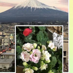 外出先から帰って来て あらー、今日の富士山きれいだな🗻 (*˘︶˘*).。.:*♡ •*¨*•.¸¸☆*・゚ 日の入り時刻、雲が少しピンク色に染まってきてました。 部屋ではカランコエのお花もピンク色🌸 だいぶ開花してました。ꕤ*.゚ バラ咲きクィーンローズ クララ かわいい色合いで咲いてくれました。