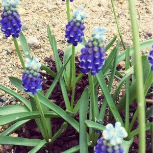 大好きなムスカリ 去年植えた球根 5ヶ月をへて 皆揃って 勢揃い❤️ ムスカリさん 色々の種類あるのかな〜 先端に可愛い冠💕 キュートです(╹◡╹)