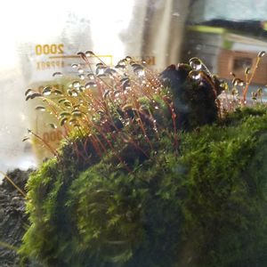2019.4.5 ベース苔しか元気じゃないミニクワズイモ 思い切って剪定、ガラス瓶内へ引越しテラリウム風保湿 このビンは、便瓶💩だそうです。小泉硝子製作所のアウトレットセール物 ※久々ログインで写真整理中
