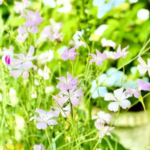 お散歩中に見たお花たち…🌼🌸🌺 サポナリア(サボンソウ) ヤナギハナガサ(サンジャクバーベナ) スケトシア(ルリギク) ダウカスダーラ(ノラニンジン) シュッコンバーベナ ⚫︎⚪︎⚪︎⚪︎⚪︎
