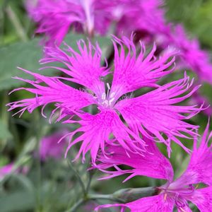 マツモトセンノウです。 自然大好き派😘、兼園芸🧑🌾もやっています派です。 センノウ2種目です。マツモトセンノウは朱、白、桃、斑入りの4種ありますが開花はこの子が先頭です。 この子は葉っぱも濃い赤紫の細葉で芽を出した時から一際目立った存在でしたが開花でも存在感があります。 センノウは花色が特徴的なんですがこの後も次々アップします。見て下さいね。