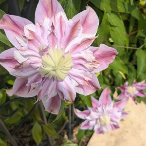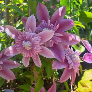 クレマチス ジョセフィーヌ エレガントで優しい雰囲気のピンクの大輪が、今年はたくさん咲きました 咲き始めてもう1週間くらいですが、美しい花姿で、門前を彩ってくれてます 2年前、フラワーパークでの展示品の放出販売に遭遇し、花後の大苗をなんとワンコインで、、、💕 今年は、挿し木にチャレンジしてみようかな??