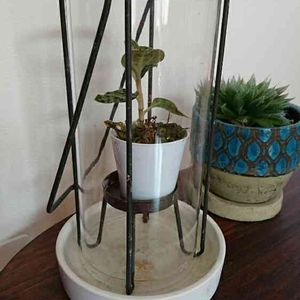 瓶が見つかるまで夜は最近こんな感じのマコデスペトラ嬢。 華やかな葉とは裏腹にとてもダサいです(笑) ダイソーの温室度計がそもそも合ってるかも怪しい(笑)