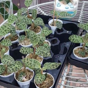 前々から興味があったジュエルオーキッド、手頃なお値段で入っていたので買っちゃいました! ショップで本物を初めて目にした時は、「なんだ、GSの投稿で見る程光ってないじゃないか😖」と落胆しましたが、持ち帰りライトを当てたら納得😊 これこれ、このキラメキ✨ 一株は蕾がきています。 ジュエルの花芽については色々と議論がありますが、このまま咲かせてみます!