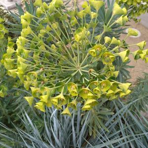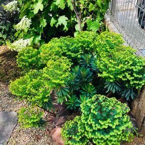 ユーフォルビア・カラキアス 小さな苗を地植えして5.6年 毎年少しずつ花が大きくなってきました。今一番大きい花は直径20センチ程♡花が終わるまで長く、存在感を放ってくれます
