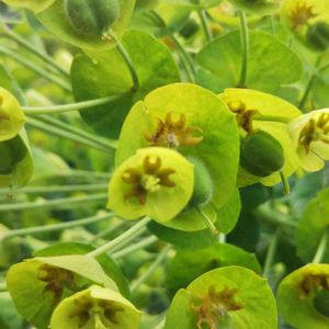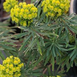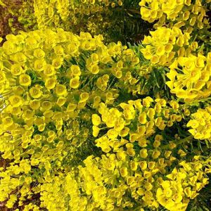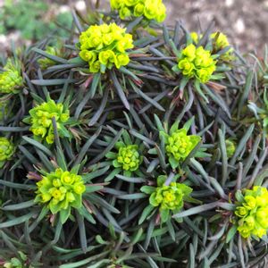 今朝、公園で見かけました、はじめて見たのですが、どうやら、科:トウダイグサ(euphorbiaceae)属:ユーフォルビア(euphorbia)種:カラキアス(charcias)のようです。回答ありがとうございました! 投稿が2年ぶりだった事に我ながら驚きました。