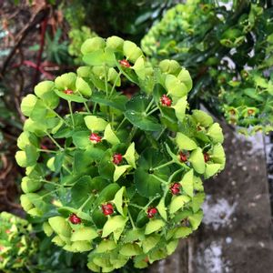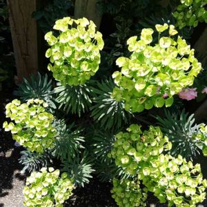 近所で初めて見る、面白い花を見つけました。誰かが育てているのか。 ユーフォルビア・カラキアス。