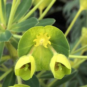 ユーフォルビア・カラキアス トウダイグサ科トウダイグサ属 種:ブラックパール 苞は黄緑色で中心部が茶褐色 不思議なお花✨🥀✨ 2019/4/8 北九州市 白野江植物公園