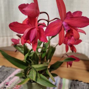 こんばんはー(^^) ミニカトレア ✨ラブフォート・ ナツコ✨ 真っ赤なお花が咲きました!❤