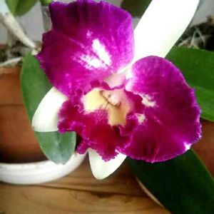 世界一好きなミニカトレア🌼✨ もう1輪を待てずに、up⤴🎶 左側に綺麗な斑入り葉も写ったよ~🎶 少し本領発揮よりは色が薄いけど、根なしから頑張ったんだもの、 9ヶ月からこれなら上出来だよ✨ 足かけ8年ぶりの再会となりました😆🎶 また会えて、ほんとうに嬉しいよ~😭💖💛💙